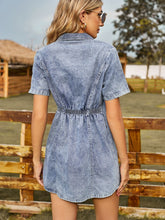 Button Up Short Sleeve Mini Denim Dress - Classic Casual Denim