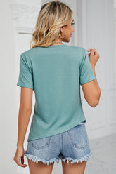 Women's Ruched Round Neck Short Sleeve T-Shirt - Flattering Fit